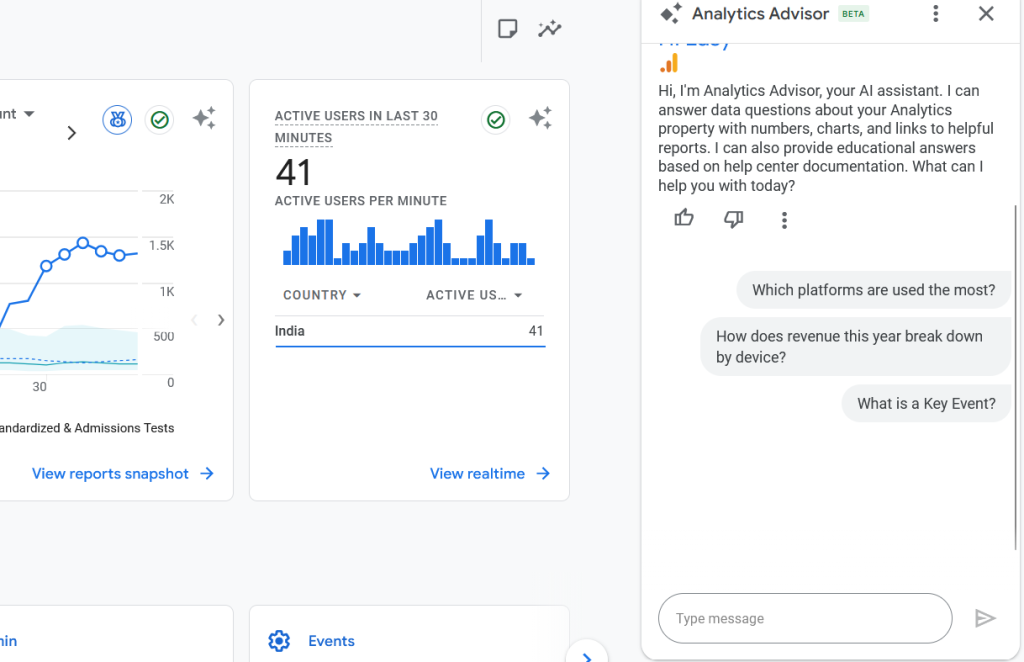 2. If you have GA4 access, play with Analytics Advisor – get comfortable with natural-language analytics, and observe which insights are most valuable.